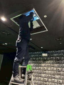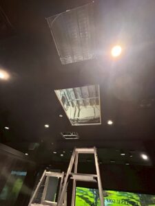 完了後と施工中の写真です。今回は隠ぺい型より天井カセット形に変更して工事完了です!
