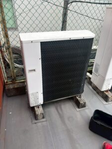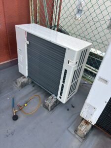 今回は業務用壁掛けエアコンの更新工事でした。よくご家庭用のルームエアコンと間違えられますが、ルームエアコンより大きさは少し大きく、能力も大きいことが多いです。